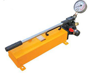 手动油泵,是把手动的机械能转换为液体的压力能的一种小型液压泵站。加装踏板及弹簧复位机构,可改为脚动操作。在配套油缸及专用工具的情况下,可以进行各种作业,例如起重、弯形、调直、剪切、铆合、装配、拆卸及一些建筑施工、军事施工等。油泵的主要特点是:动力为手动,高压,小型,携带方便,操作简单,应用范围广。